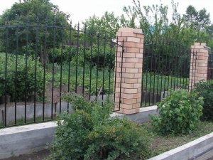 Заборы из профнастила с кирпичными столбами